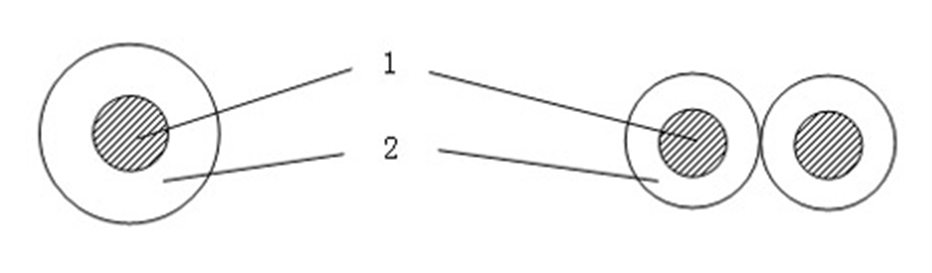 1--- 铜芯导体; 2--- 交联聚烯烃J缘; 3--- 聚烯烃护套; 4--- 铜丝编织屏蔽层。